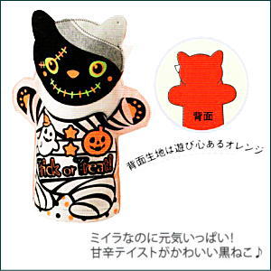 [業務用]ハロウィン用 不織布バック 20枚入ねこミイラパペット LE132プレゼント(お菓子)のラッピングに。おしゃれでかわいい不織布の袋(PP不織布/袋/ラッピングバック)。かわいい黒ねこミイラ。