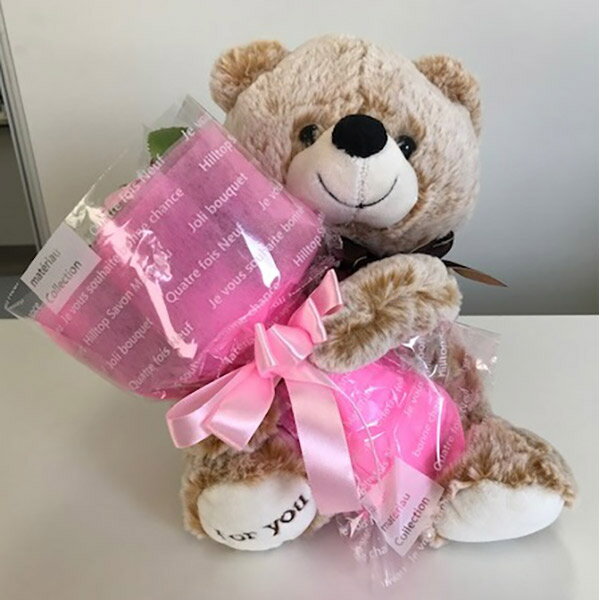GLOBAL(グローバル):抱きつきベアー ソープフラワー ピンクブーケ