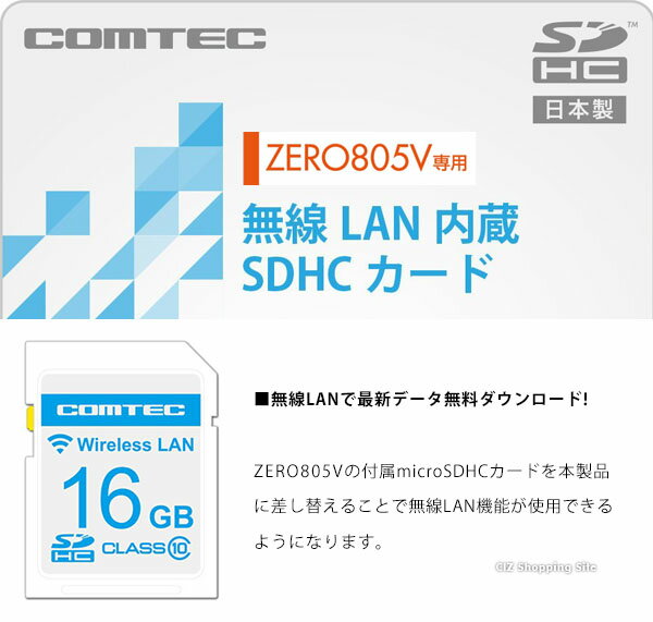 無線LANで最新データ無料ダウンロード! コムテック 無線LAN内蔵SDHCカード ZERO805V用 WSD16G-805V※沖縄・離島への配送は別途、中継料がかかります。