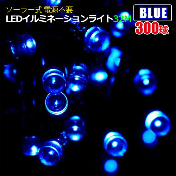 8点滅パターンLEDイルミネーション!ブルー32MタイプLEDイルミネーションライト 32M LED300個 ソーラー式 電源不要クリスマス 照明 デコレーション 防水 屋外